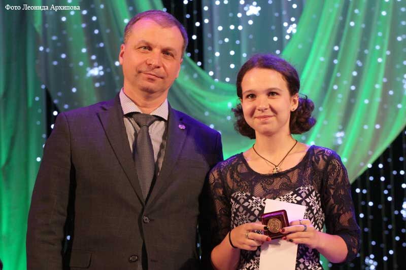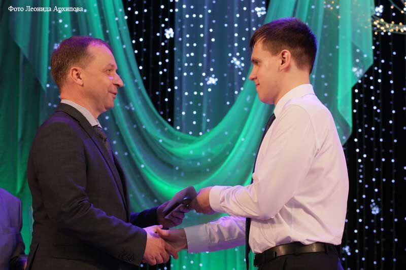 Один за другим выпускники поднимаются на сцену, чтобы из рук Андрея Потапова и Ивана Сбродова получить медали, дипломы и денежные премии.