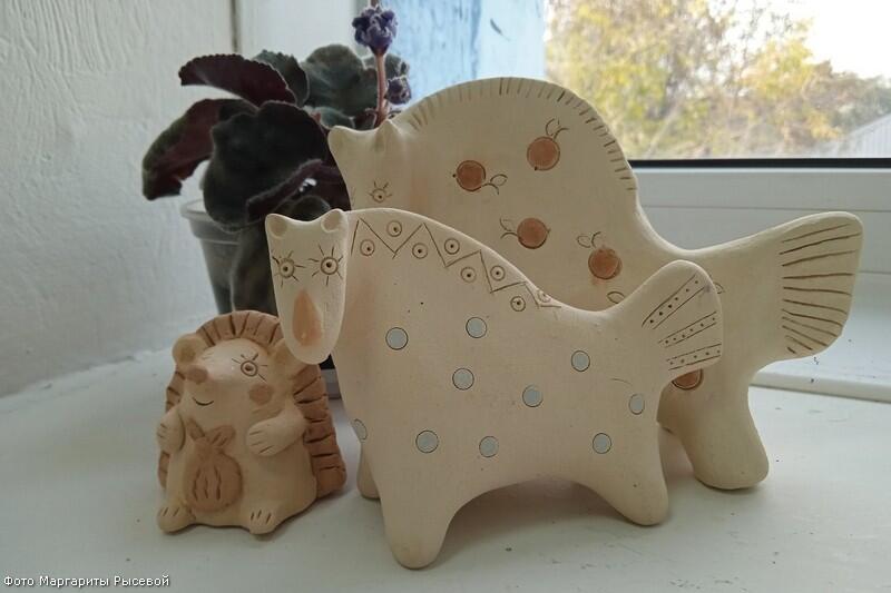 Небольшая уютная студия расположилась на втором этаже офисного здания. У входа – гончарный круг. Нет, не тот, который приводится в движение силой самого гончара, а современный, электрический. У окна – длинный рабочий стол, застеленный клеёнкой. Подоконник уставлен глиняными фигурками – здесь изящные лошадки, капибара с крошкой-детёнышем, мышка, жираф, Тоторо из японского аниме. Сидят в рядок на подоконнике, широко распахнув глаза-солнышки. Как живые. Каждую хочется рассматривать и придумать ей имя. Здесь работы самой Олеси и тех, кто посещал её мастер-классы. Обжигают фигурки тут же, в специальной печке. Её Олеся приобрела на свои деньги, остальное оборудование – раскаточный станок и гончарный круг – на средства, поученные от государства в рамках социального контракта.
