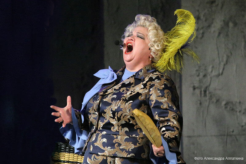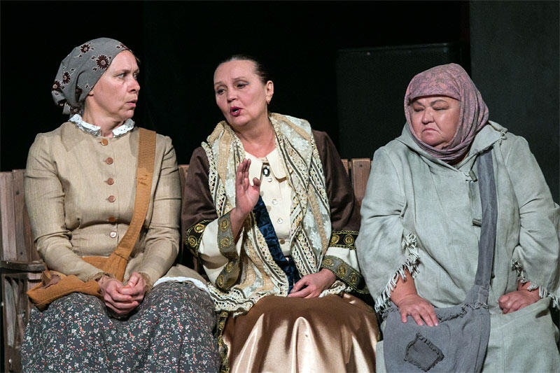 «Гроза». Феклуша- арт. Ирина Шалимова, Марфа Игнатьевна Кабанова (Кабаниха) — арт. Екатерина Горяева, городской житель — арт. Лариса Эта.