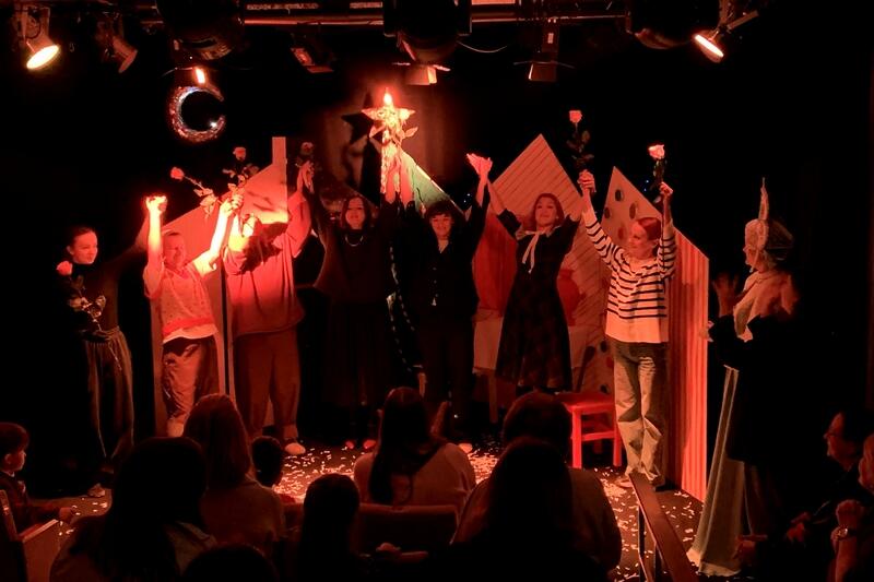 Музыкальный оформитель Евгения Фисенко дала зрителям возможность подпевать. Только вместо классической «В лесу родилась елочка» — «Земля в иллюминаторе». Спектакль-то космический.