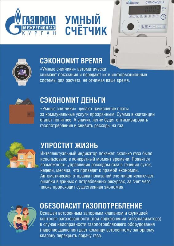 «Забудьте о старых проблемах с газовыми счетчиками. Установите интеллектуальный прибор и получите реальную экономию времени и денег, прозрачные расчеты и надежную защиту для вашего дома. Берегите себя и своих близких — делайте учет газа умнее вместе с нами!», — обращается к потребителям компания «Газпром межрегионгаз Курган».