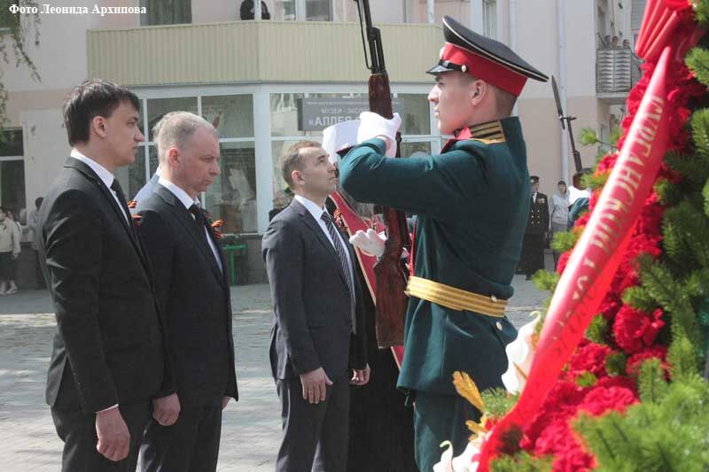 Затем руководители области и города вместе с жителями возложили цветы к Вечному огню, памятникам генерал-полковнику Шумилову, кавалеру пяти медалей «За отвагу» Максиму Захарову.