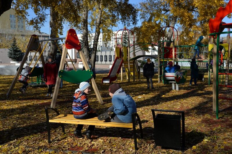 Снова возвращаюсь на Гоголя. Шагаю мимо любимого парка ЦПКиО, где полным ходом идут работы по благоустройству. Сворачиваю в детский парк и по улице Пушкина выхожу к торговому центру. Напротив него еще летом был полузаброшенный неуютный клочок земли, где единственной достопримечательностью служила «шаурмячная». Сейчас это место не узнать. Ларек переехал, а вместо неопрятной площадки появился сквер с симпатичными скамейками, качелями, беседкой и небольшим батутом, к которому выстроилась очередь из ребятишек. Дети здесь везде — сквер оборудован специально для них. Родители тоже довольны — такого оживления в этих краях я еще не видела. Кто наигрался здесь, может переместиться в парк Победы. Там еще идет ремонт, но частично работы уже закончены и на обновленных местах установлены две детские площадки с прорезиненным покрытием и игровыми комплексами.