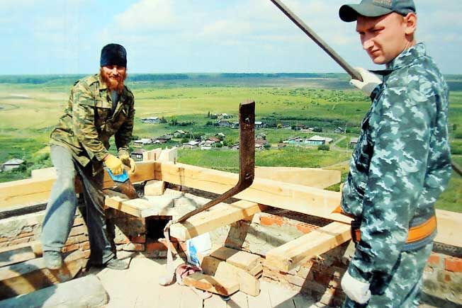 Отдельная история, как отец Сергий вместе с сыном Александром и друзьями, устанавливали шпиль, купол и колокола, а также старинный кованый крест. Все делали вручную, без крана, с помощью тросов… Специалисты – строители говорят, что при такой высоте и тяжести, это практически невозможно. Но с Божией помощью справились.