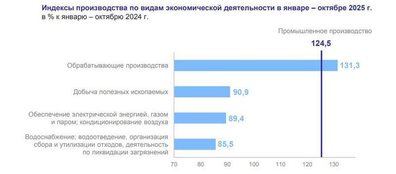 Индекс промышленного производства в Курганской области в январе – октябре 2025 года по сравнению с январем – октябрем 2024 года составил 124,5%, сообщает Свердловскстат.