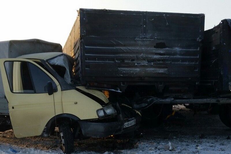 Водитель грузового автомобиля Volvo при совершении обгона выехал на полосу встречного движения, где столкнулся с автомобилем КамАЗ. КамАЗ развернуло — произошло столкновение с грузовой «ГАЗелью», которая ехала в попутном направлении с автомобилем Volvo.
