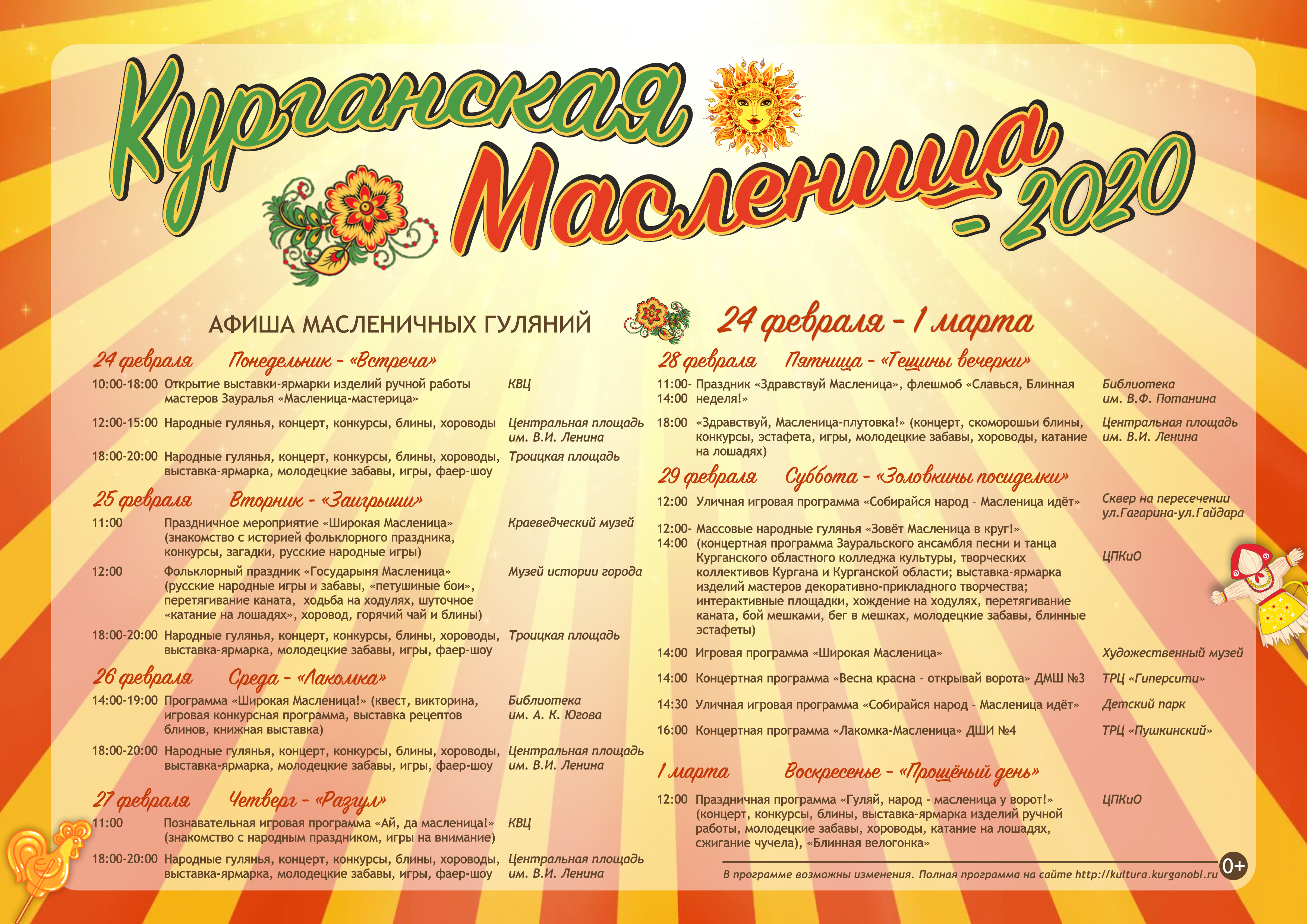12.00. КЦ «Курган». «Гуляй, Масленица». Театрализованное представление для семейного просмотра.