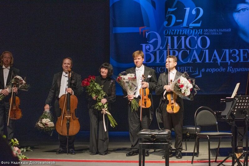 Федор Белугин (альт), Андрей Баранов (первая скрипка), Алексей Жилин (виолончель) и Родион Петров (вторая скрипка)В Кургане квартет имени Давида Ойстраха выступает уже в третий раз. «Это особенное для нас место, потому что, во-первых, нужно отдать должное художественному руководителю Курганской филармонии Сергею Сергеевичу Потапову, который очень многое вкладывает в то, чтобы такие артисты приезжали, держит марку, на высоком уровне. Во-вторых, в компании Элисо Константиновны это всегда такое счастье! Каждый концерт как жемчужина для вас. Работать вместе с Элисо Вирсаладзе – это великое счастье, наслаждение и учеба. Каждая репетиция, каждое выступление, общение с ней – это колоссальный опыт, который невосполним никаким другим способом», – сказал Федор Белугин (альт).