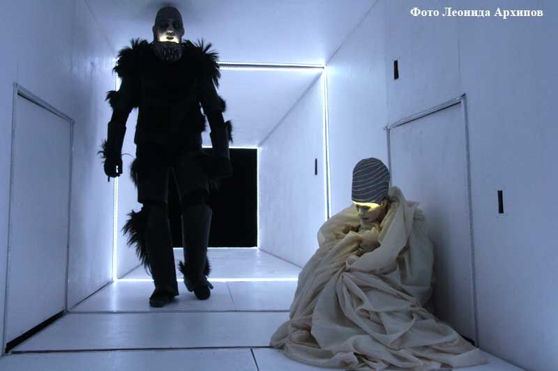 За высокотехничную кукольную часть постановки отвечают Сергей Котельников – исполнитель роли сына Голо Иньольда и Татьяна Леняшина, которой одновременно удается играть роль пяти служанок! Эта удивительная сложносочиненная движущаяся конструкция с пятью персонажами перешептывается, спорит, делает уборку десятью руками, подслушивает и подглядывает. И просто потрясает тем, как она фантастически сделана!