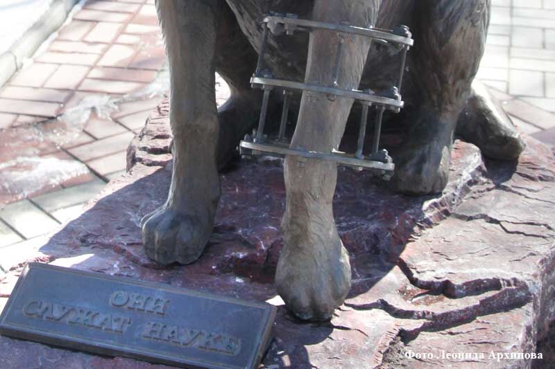 В Кургане в мемориальном парке имени академика Г.А. Илизарова есть место под названием «Собачкин сквер». В центре сквера установлена скульптурная композиция -бронзовая собака на постаменте из красной яшмы. В основу скульптуры под названием «Они служат науке» легла история реальной собаки – овчарки по кличке Спица, которой в научных целях на голень был установлен аппарат внешней фиксации. Собаки участвуют во многих научных исследованиях сотрудников экспериментальной лаборатории, чтобы в дальнейшем можно было использовать конструкции аппаратов и методики для лечения людей. Памятник установлен в знак благодарности животным за помощь, которую они оказывают ученым-экспериментаторам.