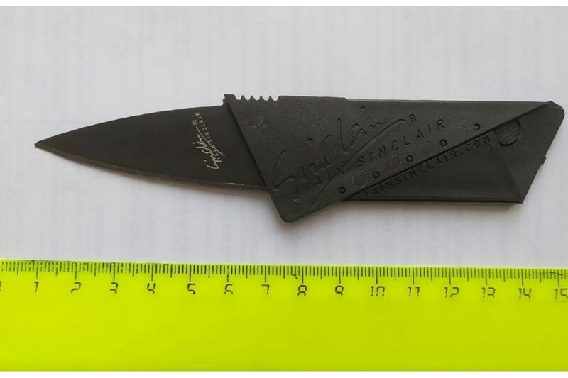 Посетитель ответил, что ничего запрещенного при себе не имеет. Но во время досмотра сумки судебный пристав по ОУПДС обнаружил необычную пластиковую карту, в которой был скрыт складной нож с семисантиметровым лезвием. Мужчина занервничал и начал доказывать сотруднику службы, что это брелок, а не колюще-режущий предмет, но уловка не сработала.