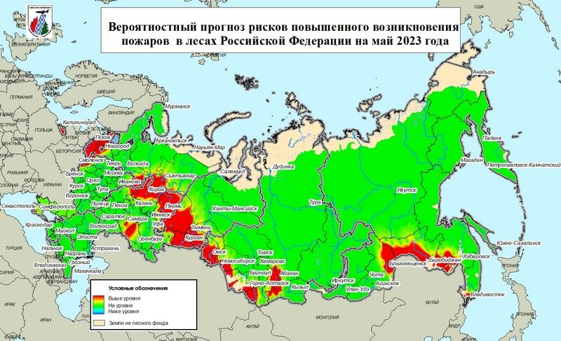 Федеральная Авиалесоохрана разработала предварительный прогноз пожарной опасности в лесах России на май 2023 года.