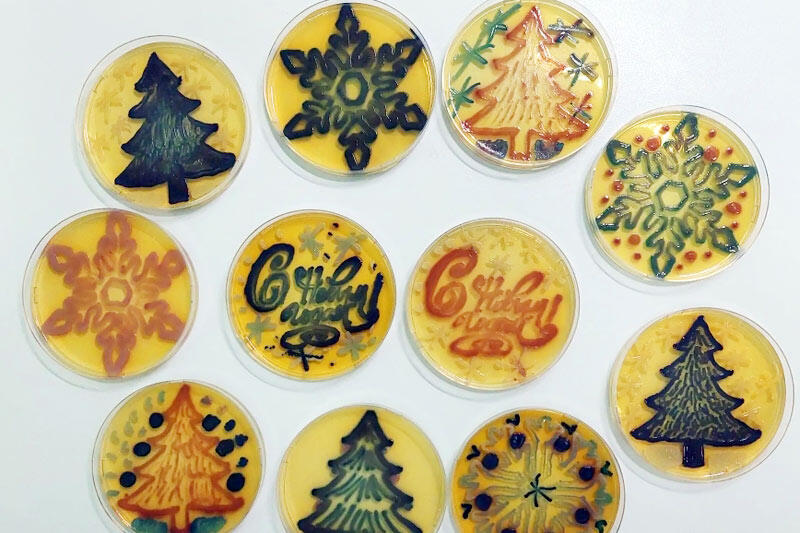 Курганские микробиологии сделал новогоднюю открытку с помощью бактерий