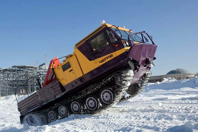 Фото kurganmashzavod.ruЭта удобная в управлении, маневренная конструкция благодаря оригинальному решению гусениц может перевозить людей в условиях бездорожья, легко преодолевая снежную целину, болота. При этом машина сконструирована так, чтобы как можно меньше вредить хрупкой экологической системе приполярной тундры.