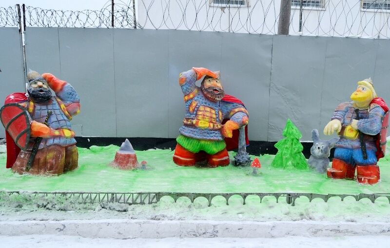 К конкурсу заключенные подошли творчески и серьезно. В колонии строгого режима №6 смастерили фигуры отечественных и зарубежных мультяшных персонажей, миниатюрный замок изо льда. Но больше всего жюри впечатлила композиция «Три богатыря». Былинные персонажи пришли к камню, который указывает им скорейший путь на свободу: «Труд, творчество и спорт – дорога к дому». За эту композицию ИК-6 признана абсолютным победителем конкурса.
