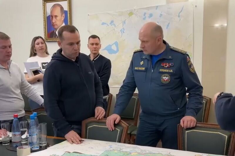 Сразу по прибытии в Курган поздно вечером 15 апреля глава МЧС России Александр Куренков обсудил с губернатором Вадимом Шумковым оперативную обстановку по паводку в регионе и принимаемые меры. Об этом сообщается в телеграм-канале правительства Курганской области.