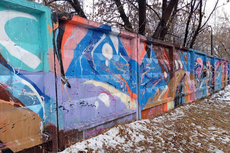 Курганский художник расписал забор у школы №17 в технике дриппинг