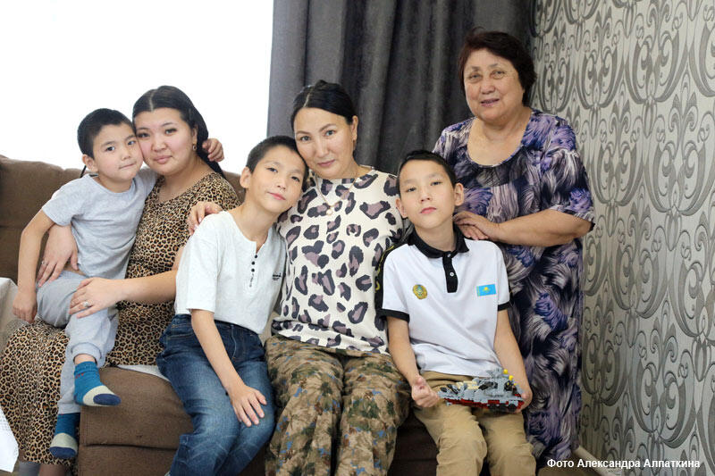 Папы Мейрама дома не было — на работе, такую семью кормить надо. А Алма пока просто «работает» мамой. Сегодня дома лишь четверо: двойняшки-третьеклассники Ерлан и Ержан, самый младший — пятилетний Дастан. Пока мы гостили, старшая дочь Самира (ей уже 21 год) сидела с мальчишками в детской. Они, кстати, не мешали, не бегали и не кричали.