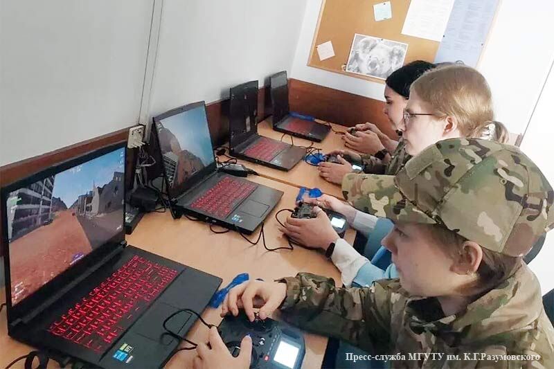 В рамках учебной программы есть занятия по управлению БПЛА – для этого вуз закупил дроны, видеоочки, профессиональные пульты управления. А для будущих журналистов оборудована медиастудия с циклорамой. Есть и электронно-стрелковый тренажер с имитацией отдачи оружия, который помогает студентам обучаться стрельбе.