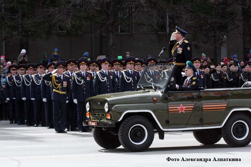 Военный парад принимал начальник Курганского пограничного института ФСБ России – генерал-майор Виктор Урюмцев. Командовал парадом – заместитель начальника института – полковник Михаил Чепик.