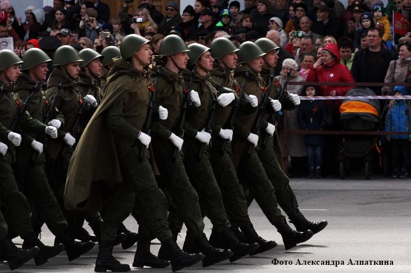Сотни людей – ветераны, почетные гости, горожане следили за колоннами курсантов и военнослужащих, прошедших маршем по центральной площади города.