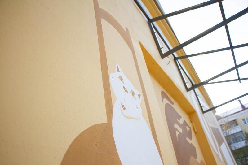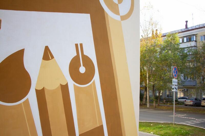 На фасаде детской художественной школы в Кургане нарисовали кота и карандаши