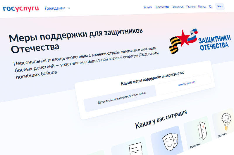 — меры поддержки для защитников Отечества и членов их семей на портале Госуслуг;