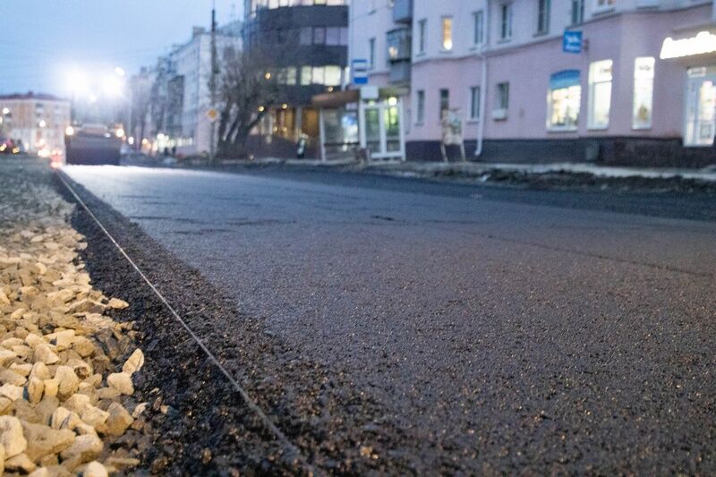 На улице Коли Мяготина приступили к асфальтированию раскопки на участке от ул. Тобольной до Зорге.