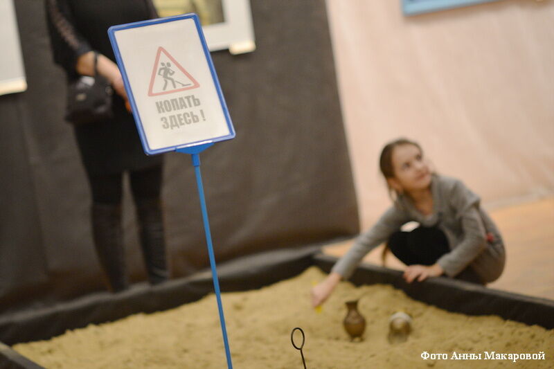 Маленький мальчик самозабвенно перетирал зерна в муку на древнеаркаимской «мельнице» из камней. И взрослые, и дети с азартом рылись в песочнице, то есть участвовали в импровизированных раскопках на Аркаиме. Одна из моих подруг мне рассказывала, что участвовала не в «разрытии», а в «зарытии» только что откопанных амфор и слепила из глины себе тотем с миленькими узорчиками.
