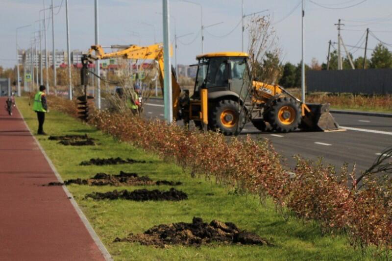 В июле здесь вдоль улицы высадили более 7 тысяч кустов кизильника. Теперь новую дорогу озеленят еще 122 цельнолистных шаровидных ивы.