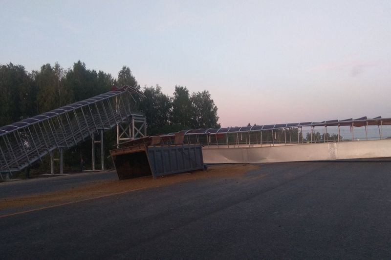 На трассе «Курган — Челябинск» самосвал снес пешеходный мост