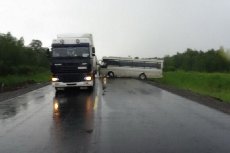 «Водитель 1969 года рождения, житель Петуховского района, управляя автобусом HYUNDAI-AERO TOWN, выехал на полосу встречного движения, допустил занос транспортного средства и наезд на стоящие в попутном направлении автомобиль 3010GA под управлением жителя Тюменской области и грузовой автомобиль DAFXF95-430 с полуприцепом-рефрижератором KOGEL под управлением жителя Республики Казахстан», — рассказали в областной госавтоинспекции.