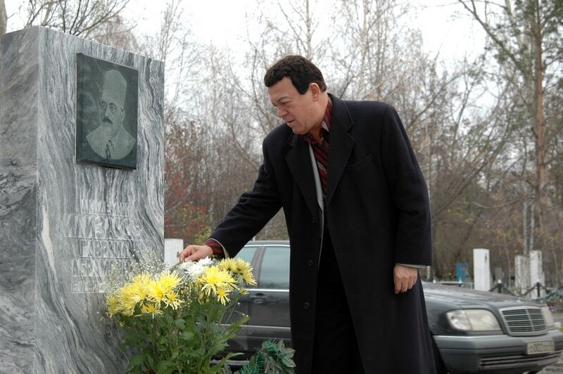 Кобзон И. Д. у могилы Илизарова Г. А. на Рябковском кладбище 27 октября 2004 г. Фото Николая Пушилина из архива кинофотолаборатории РНЦ «ВТО» им. акад. Г. А. ИлизароваКобзон был настолько обаятелен, что любая женщина СССР была готова объясниться ему в любви. А я запомнил белоснежный костюм, с выпущенным поверх воротником черной рубашки – таким в 80-х годах он выступал в нашем городе.