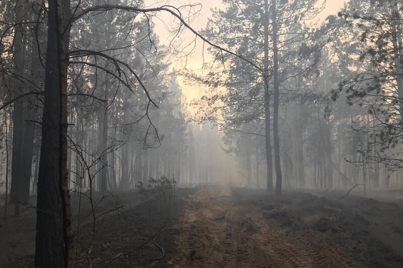 Напомним, пожар возник и был обнаружен ночью 5 мая. Из-за ветра около 40 км / ч (10 м / c) огонь быстро распространялся по сухой, как порох, лесной подстилке и быстро поднимался в кроны 15-летних сосен, переходя в верховой пожар. Высота пламени в несколько раз превышала человеческий рост. Скорость ветра нарастала до 70 км / ч, искры с верхушек деревьев разлетались в разные стороны на несколько сотен метров, создавая новые очаги. Аномальная (до +34°С) жара, сильная ветровая нагрузка, сосновые деревья, наполненные горючей смолой, сильно осложняли борьбу с огнём, создавая угрозу жизни борцам со стихией. Сильное задымление снижало видимость и затрудняло оценку обстановки.