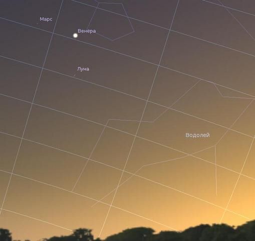 В одной точке неба всего в нескольких градусах друг от друга можно будет увидеть Венеру, Марс и Луну и поймать небесные тела в один кадр.