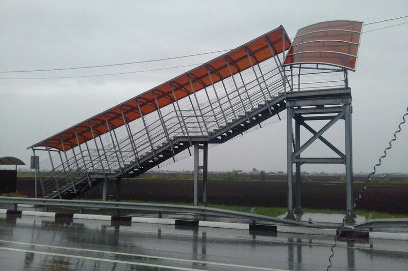 Сегодня, 17 мая, на Тобольском тракте (трасса Тюмень – Ханты-Мансийск в районе деревни Тураево) произошло обрушение надземного пешеходного перехода.