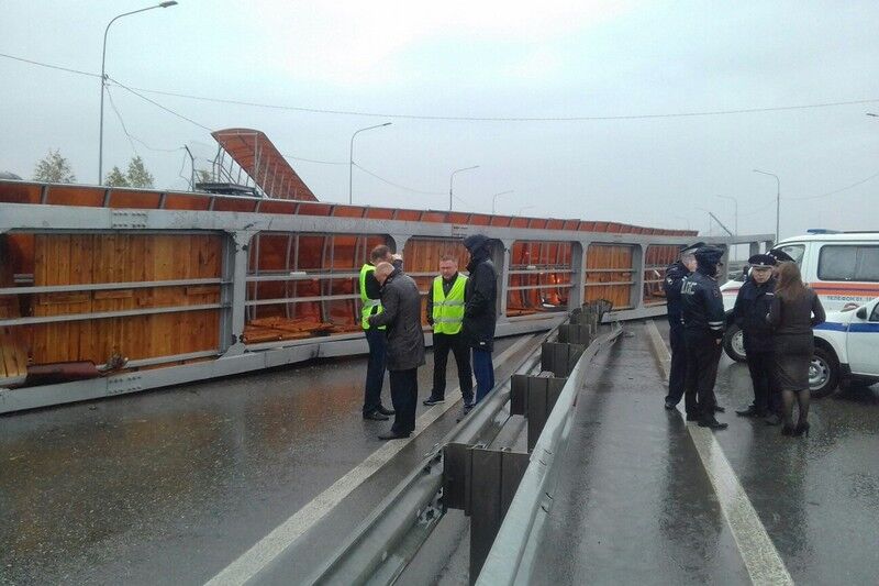 Конструкция обрушилась на трассу. ФОТО