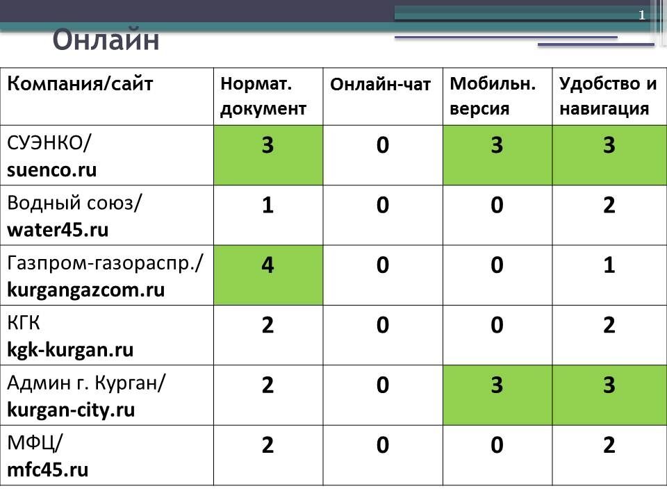 Среди компаний, прошедших проверку – «Водный союз», СУЭНКО, «Газпром газораспределение Курган», Курганская генерирующая компания, УФНС, МФЦ.