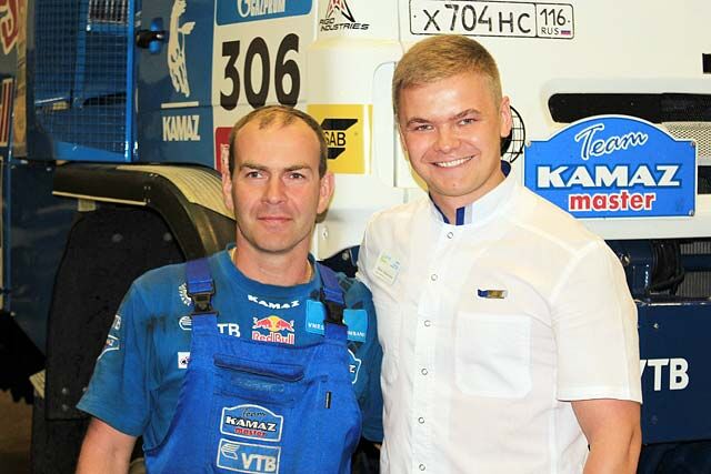 Директор Тюменского филиала ЦВТиО «Ариадна»  Павел Борисович Очеретин и член команды КаМАЗ-мастер, заслуженный мастер спорта России, победитель ралли «Дакар» Андрей Олегович Каргинов.