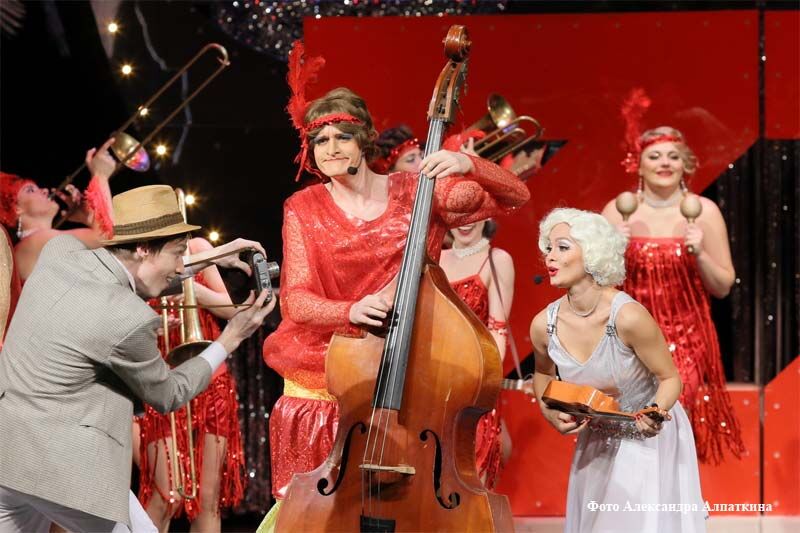 Сцена из музыкального спектакля «В джазе только девушки».Перед каждым спектаклем волнуются артисты, выходя на сцену, а во время премьеры волнуется весь театр! Эти часы порою длятся слишком долго… А потом за кулисами все поздравляют друг друга с премьерой! И как важны на каждом спектакле ваши поддержка, цветы и аплодисменты, наши верные и строгие зрители, юные и взрослые…