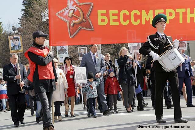 На площадь выходит «Бессмертный полк». Нескончаемый поток людей. Тысячи курганцев пронесли портреты своих отцов, дедов и прадедов. Среди участников шествия с портретами своих дедов — губернатор области Алексей Кокорин, глава города Кургана Сергей Руденко, руководитель администрации города Андрей Потапов. Делясь с журналистами впечатлениями о шествии «Бессмертного полка», Алексей Кокорин скажет: «Это самая замечательная наша патриотическая акция. Души героев, наших родных и близких, с нами. Память жива и наша память вечна».