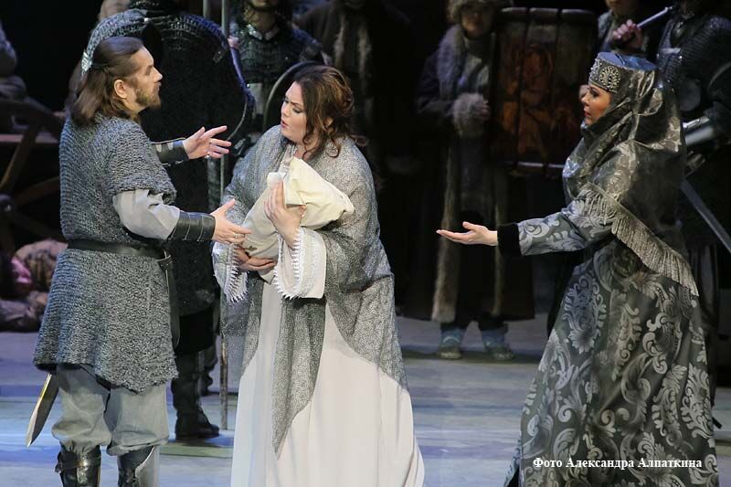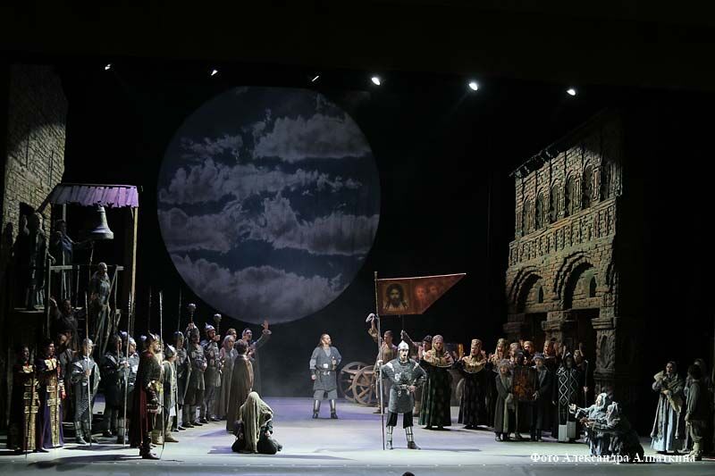 Наверное, справедливо было бы начать этот материал с глубокой благодарности Министерству культуры России, без поддержки которого проект «Большие гастроли» никак не смог бы стать реальностью. Потому что, согласитесь, классическая, монументальная эпическая опера с живым оркестром, звездными солистами, великолепным хором, владеющим в придачу ко всему хореографическими навыками, — это поистине большие гастроли. Помимо творческого музыкального коллектива, мощного оперного звучания и динамичного сценического действия зритель увидел впечатляющие декорации, яркие и выразительные не столько по цвету, сколько по стилю и фактуре костюмы — бояре и ратники, княгиня и девушки, красавицы-половчанки и свита хана. А сам хан, а князья!
