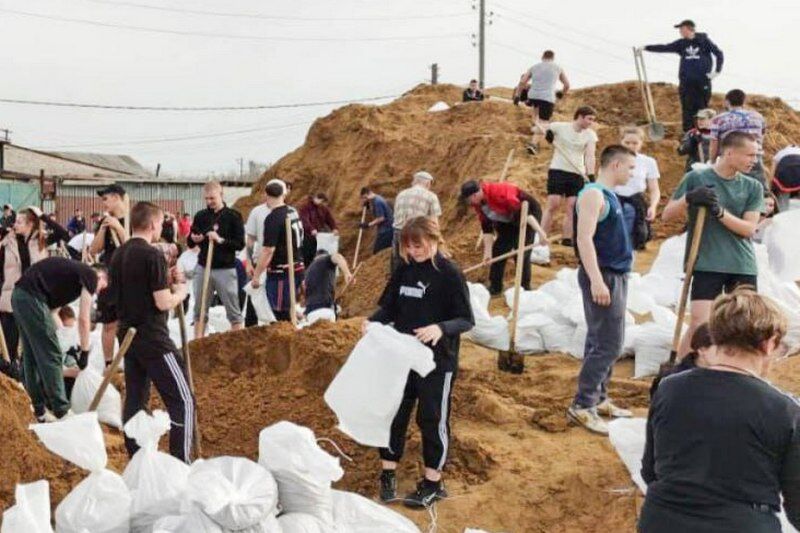 Сотни добровольцев помогают Кургану в укреплении дамбы