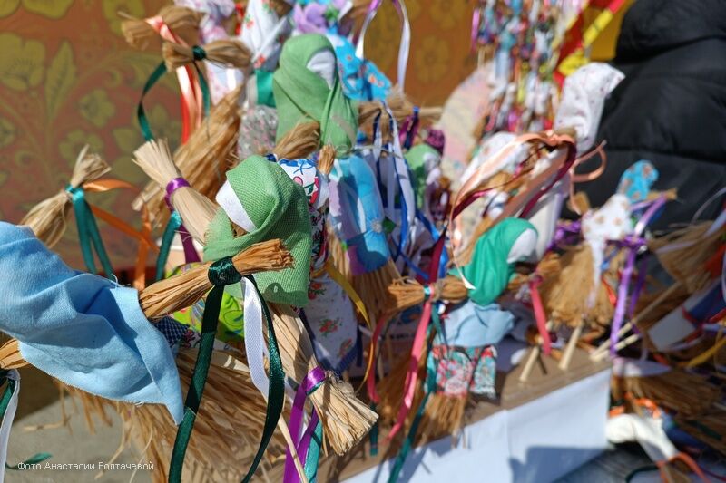 Ближайший ряд — с симпатичными соломенными куклами. Украшены яркими лентами, на головах пестрые платки. Лиц нет. «Потому что они обережные, — весело объясняют девчонки-продавцы. — Как придете домой, повесьте над дверью». Покупают охотно, особенно те, кто пришел с детьми.