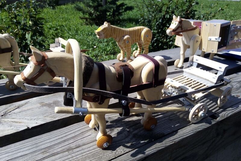В работе помогали военная смекалка и расчеты. А ещё сильное желание порадовать близких. Вячеслав Аркадьевич всё был готов отдать за улыбку внука. Со временем творения рук все более совершенствовались. Однажды появились лошадки с бричками-шкатулками, копилками в виде цистерн с молоком и безмерно добрыми глазами.