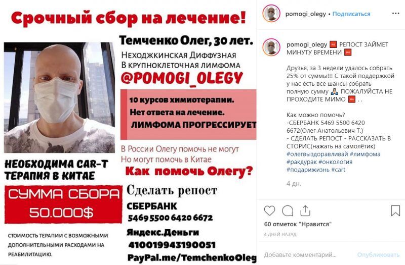 Это заболевание способны вылечить в Китае с помощью клеточной терапии без применения «химии». Сам Олег на своей странице в Инстаграм объяснил выбор места лечения.
