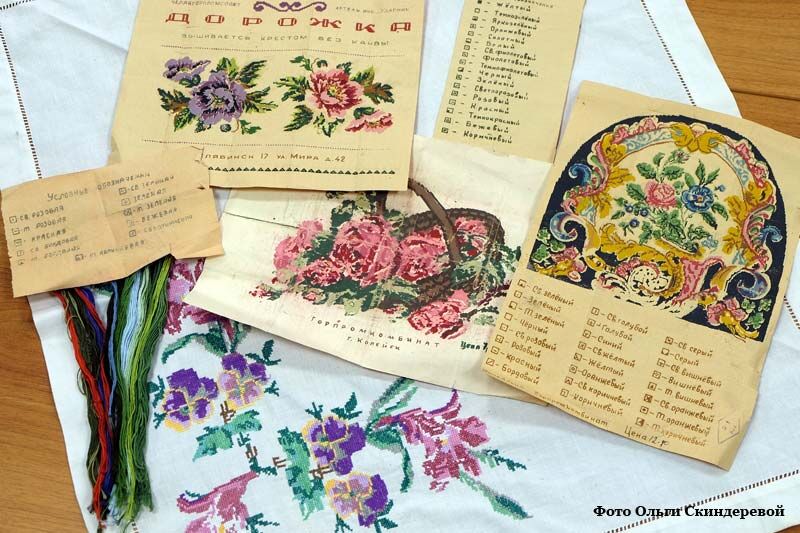 «Однажды бабушка увидела, проходя мимо какого-то дома, что на веревке сушится вышитая наволочка на подушку, – рассказывает Ольга Скиндерева. – Так она выпросила эту наволочку на ночь, чтобы скопировать необычный узор! Бабушкой владела неодолимая страсть к вышиванию. В наши дни для вышивальщиц продаются специальные наборы, в которых уже заранее подобраны и распределены нитки нужных цветов, определены сюжеты картин, разработаны орнаменты. А бабушка все цвета подбирала самостоятельно, узоры придумывала сама, это был творческий процесс».