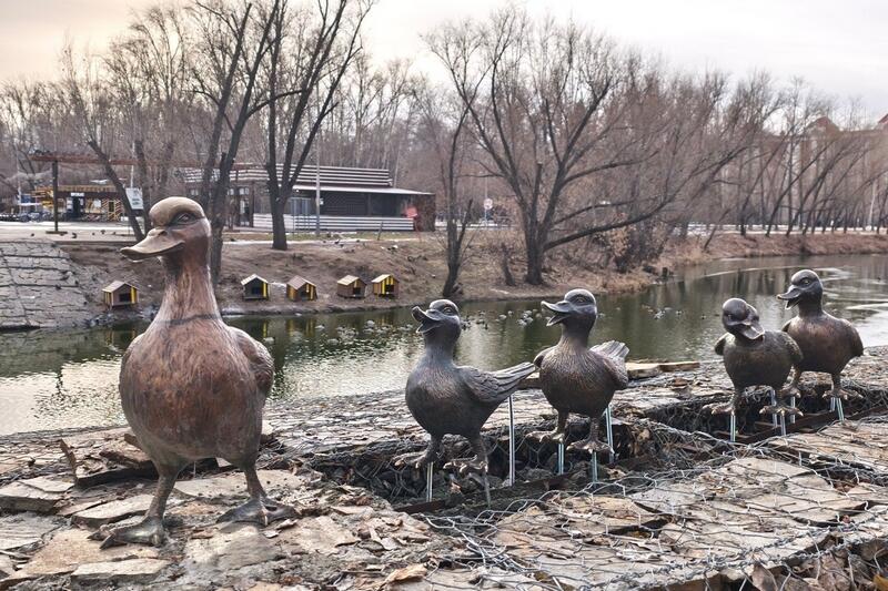 Накануне на входе в Центральный парк культуры и отдыха появилась утиная семья, сообщает пресс-служба муниципалитета. Новые арт-объекты посвящены птицам, которые постоянно обитают в местном водоеме – старице Битевке.