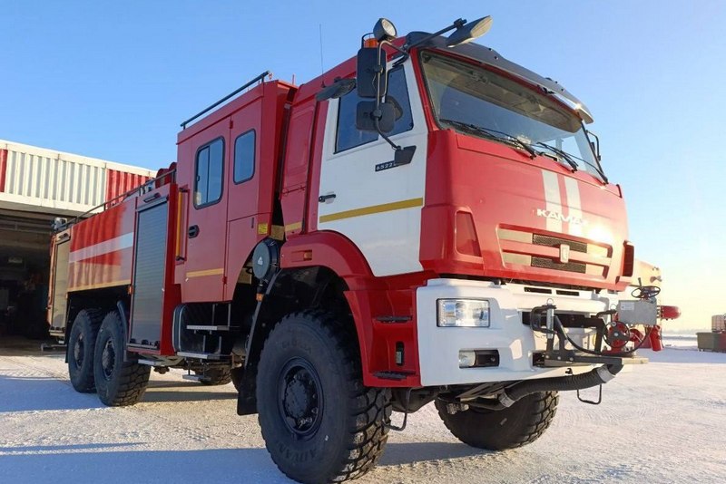 Техника получила привод 6х6 и способна двигаться по любым участкам аэродрома, включая зоны без асфальта. В автоцистерне размещены 8 тонн воды и тонна пенообразователя. На крыше и бампере установлены лафетные стволы с дистанционным управлением, подающие до 60 и 20 литров воды в секунду соответственно.