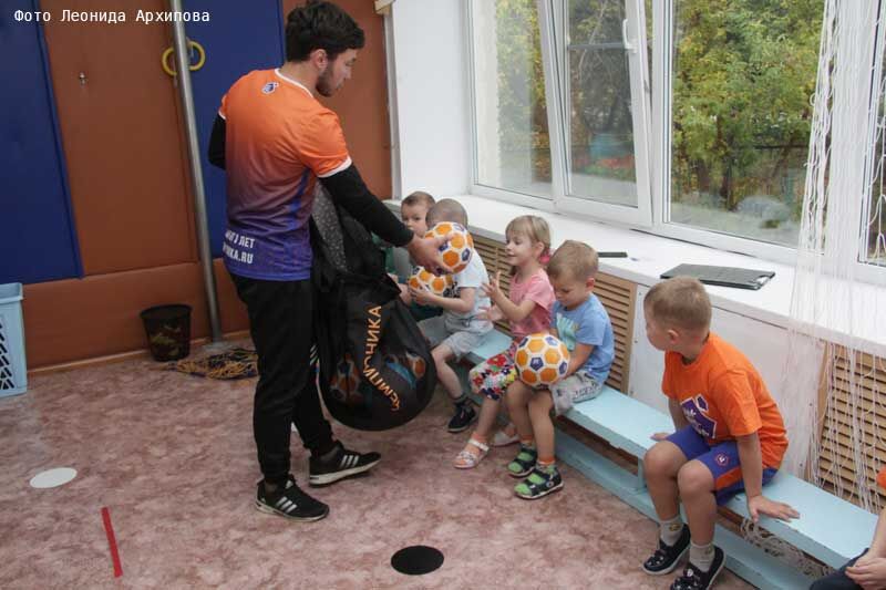 Ещё до официального открытия секции детишкам предоставили необходимый инвентарь: удобные для них маленькие мячики и ворота, обшитые тканью, чтобы обезопасить юных футболистов от травм.